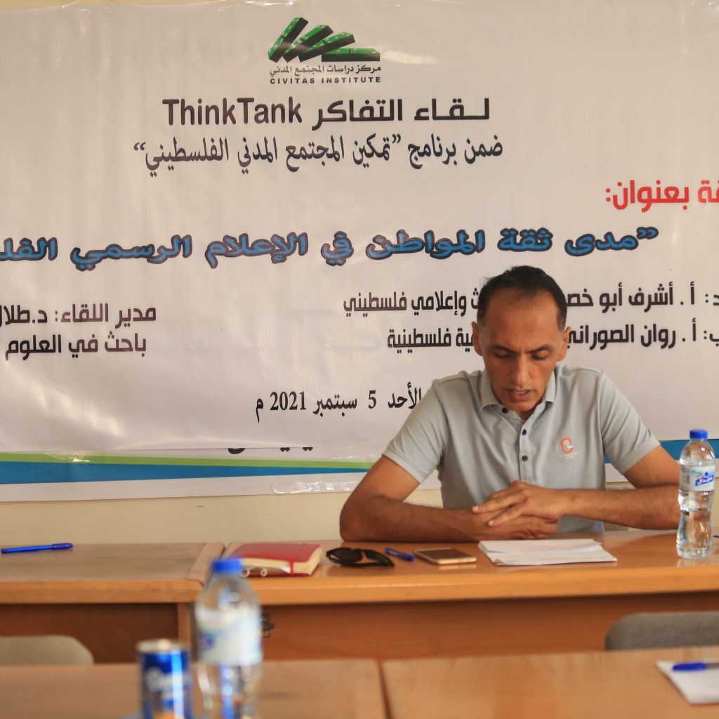 عقد مركز دراسات المجتمع المدني CIVITAS لقاء التفاكر Think Tank الأول لعام 2021 حيث تم عرض ورقة تفاكر بعنوان: “مدى ثقة المواطن في الإعلام الرسمي الفلسطيني” للباحث: أشرف أبو خصيوان